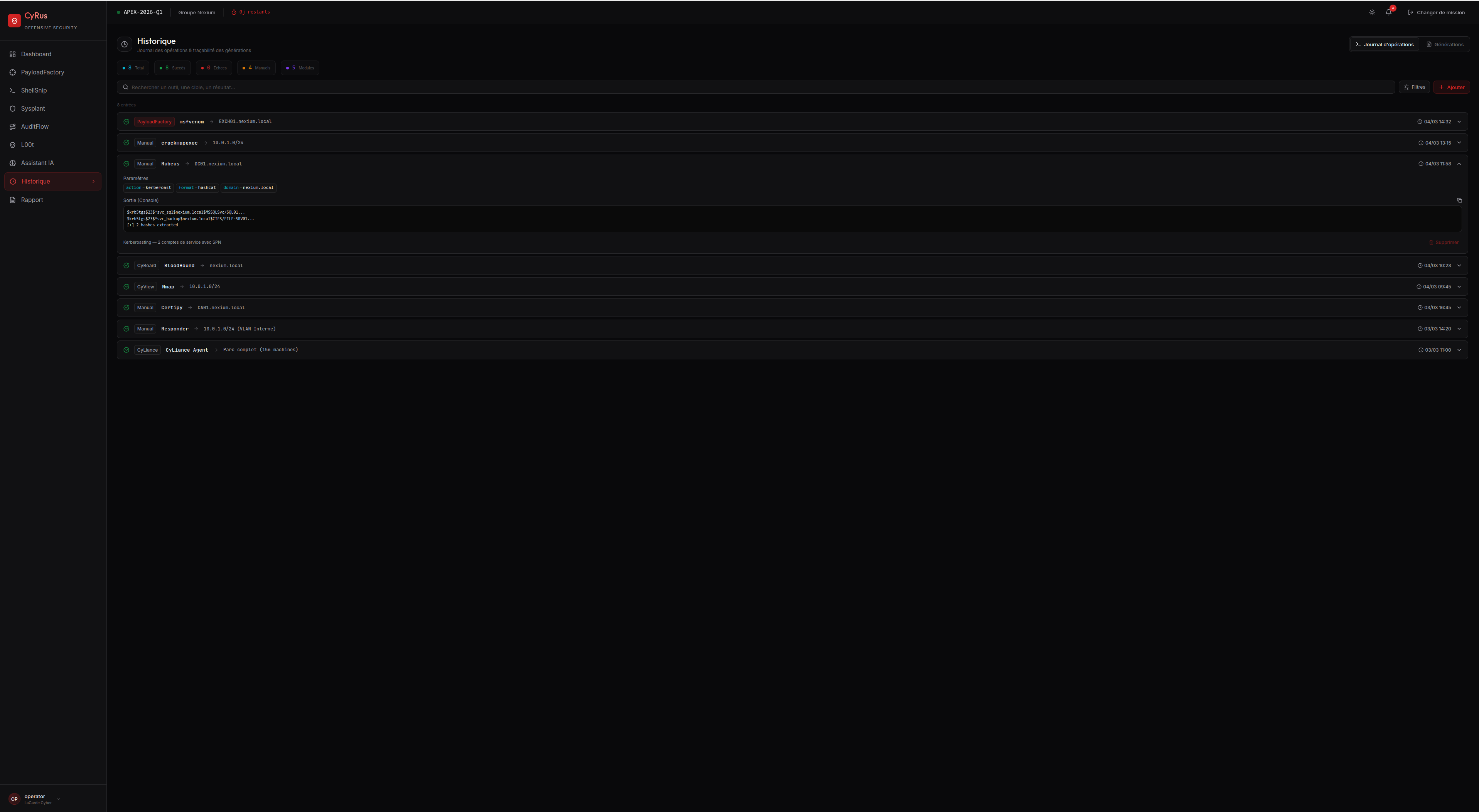 CyRus n'est pas accessible publiquement. L'accès est strictement contrôlé et réservé aux auditeurs professionnels accrédités. Chaque génération de payload est journalisée, horodatée et associée à un contexte de mission déclaré.