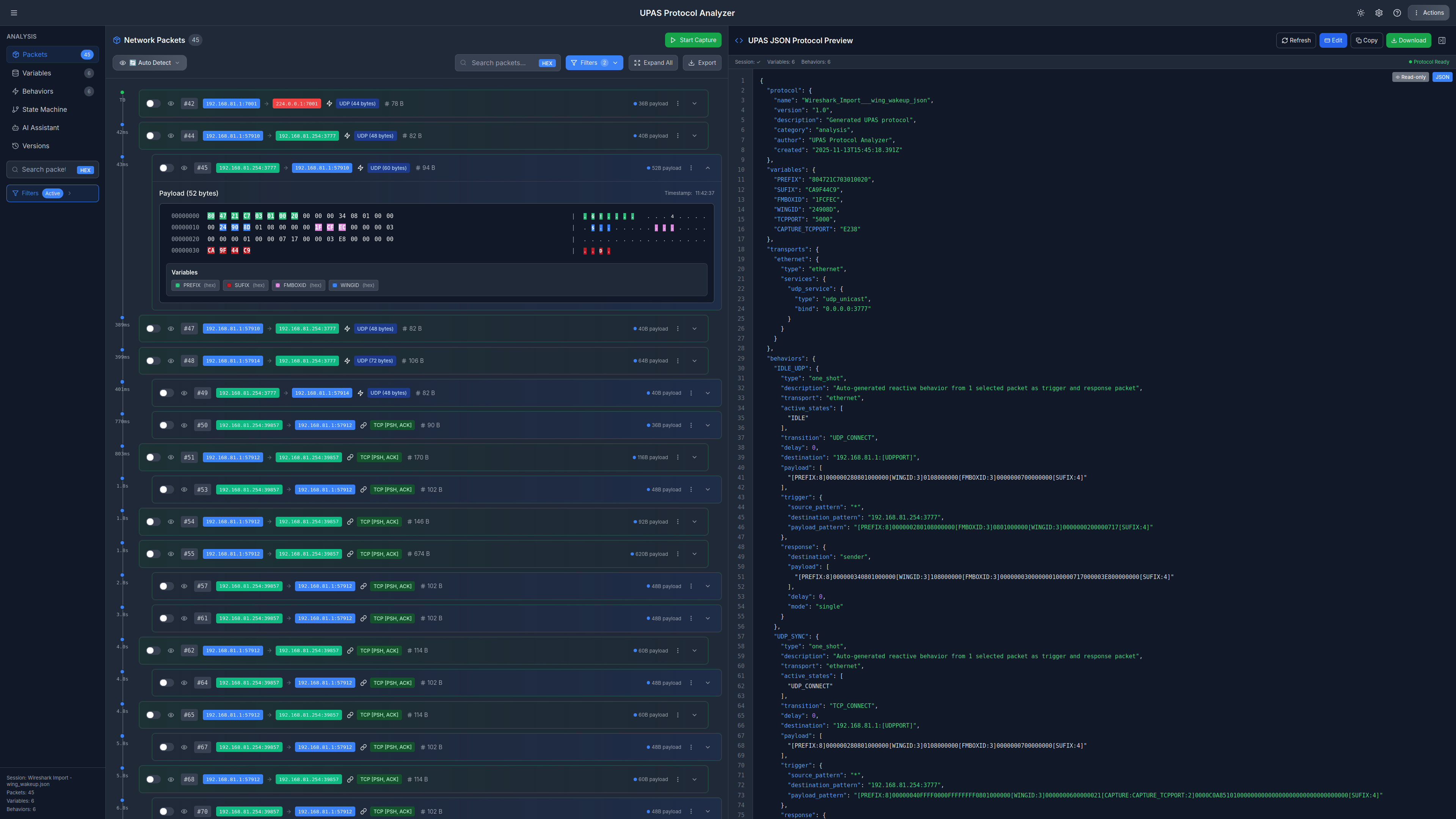 UPAS (Universal Protocol Analysis Software) est un logiciel open-source d'analyse de données binaires, spécialisé dans le reverse engineering de protocoles propriétaires. Son agent MCP intégré permet l'ingestion de traces au format pcap et pcap-ng pour identifier les patterns redondants et générer des fichiers de traces JSON. Ces traces permettent d'imiter le comportement d'un device à analyser — pour du reverse engineering ou du fuzzing à la recherche de comportements inattendus. Son client upas-cli en Python natif (sans dépendance externe) exécute ces traces via des mécaniques de machine à état.